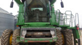 The interior of the combine includes both A/C and heat for optimal comfort during long hours of operation. The single point header coupler simplifies header attachment and detachment, while the feederhouse features lateral tilt, variable speed, and reverser…